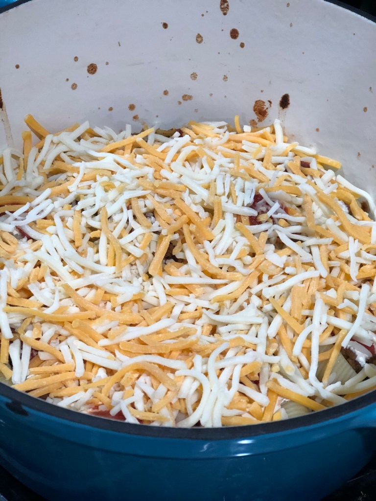 - Sprinkle shredded cheese on top and place in oven until cheese is bubbling.