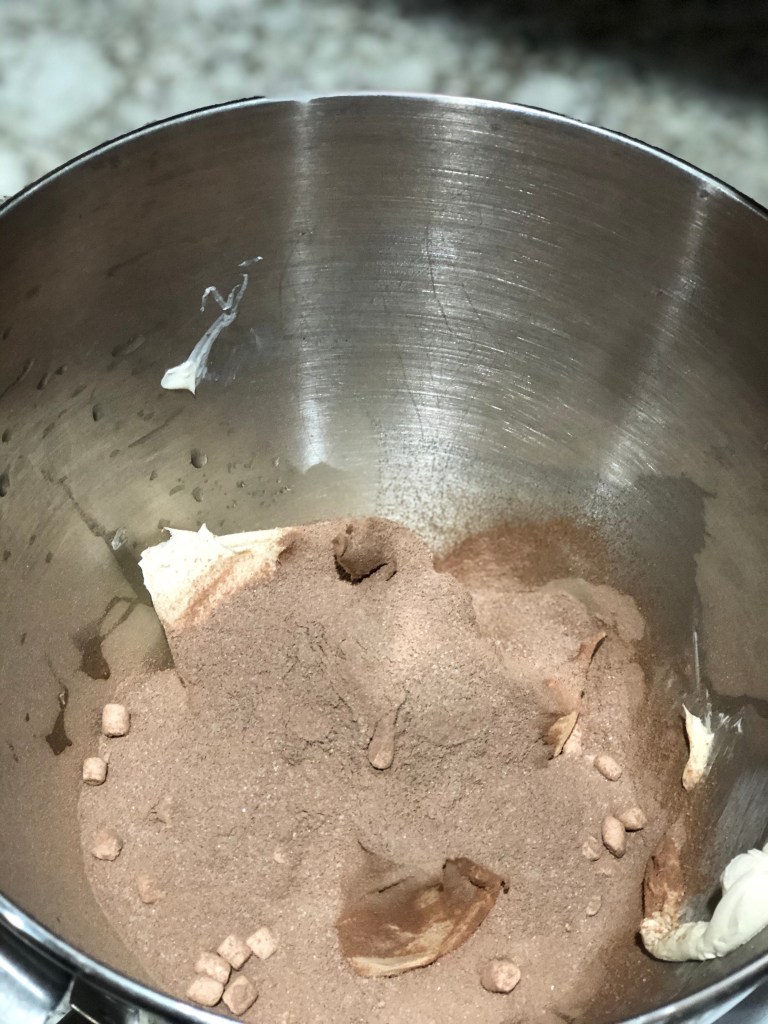 - Mix together the cream cheese and hot chocolate packets until smooth.