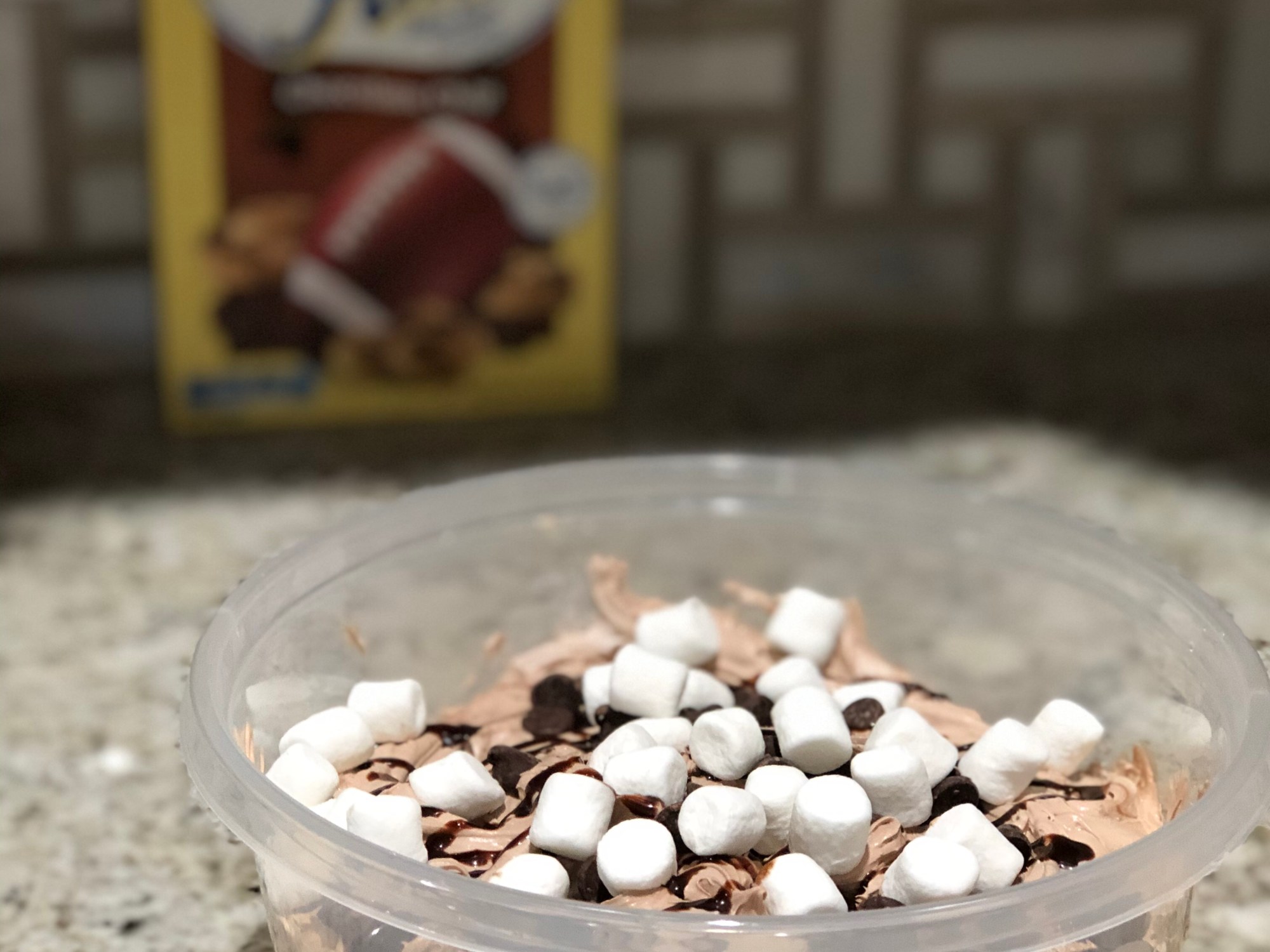 - Top the dip with the remaining chocolate chips and marshmallows. If you want you can drizzle a little syrup on top.