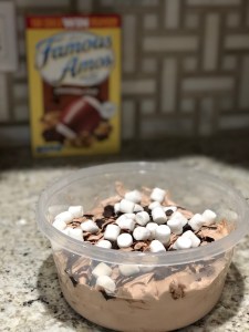 - Fold in a handful of marshmallows and chocolate chips.